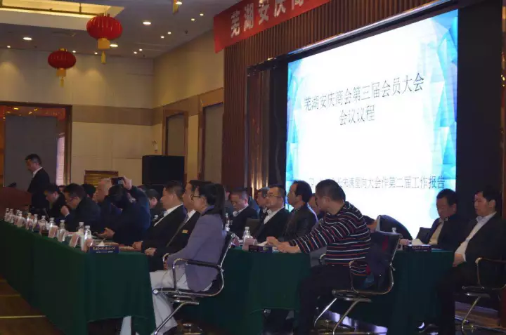 随后的19日上午,芜湖安庆商会第三届会员大会盛大召开。大会成功换届选举产生了新一届商会领导班子。安庆市委常委副市长蒲彦君、芜湖市副市长张志宏、安庆市各区县领导、全国异地安庆商会会长,秘书长及芜湖安庆商会的会员企业家等三百余人参加会议。